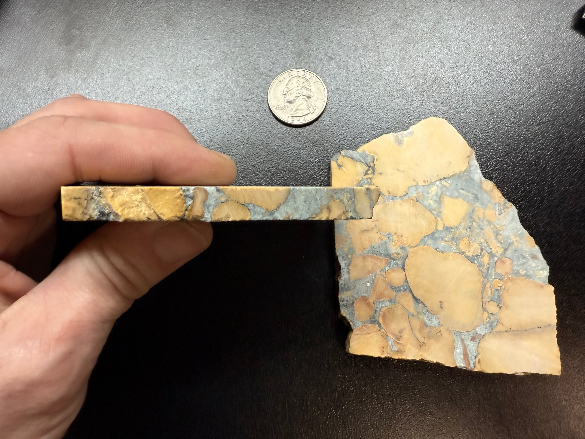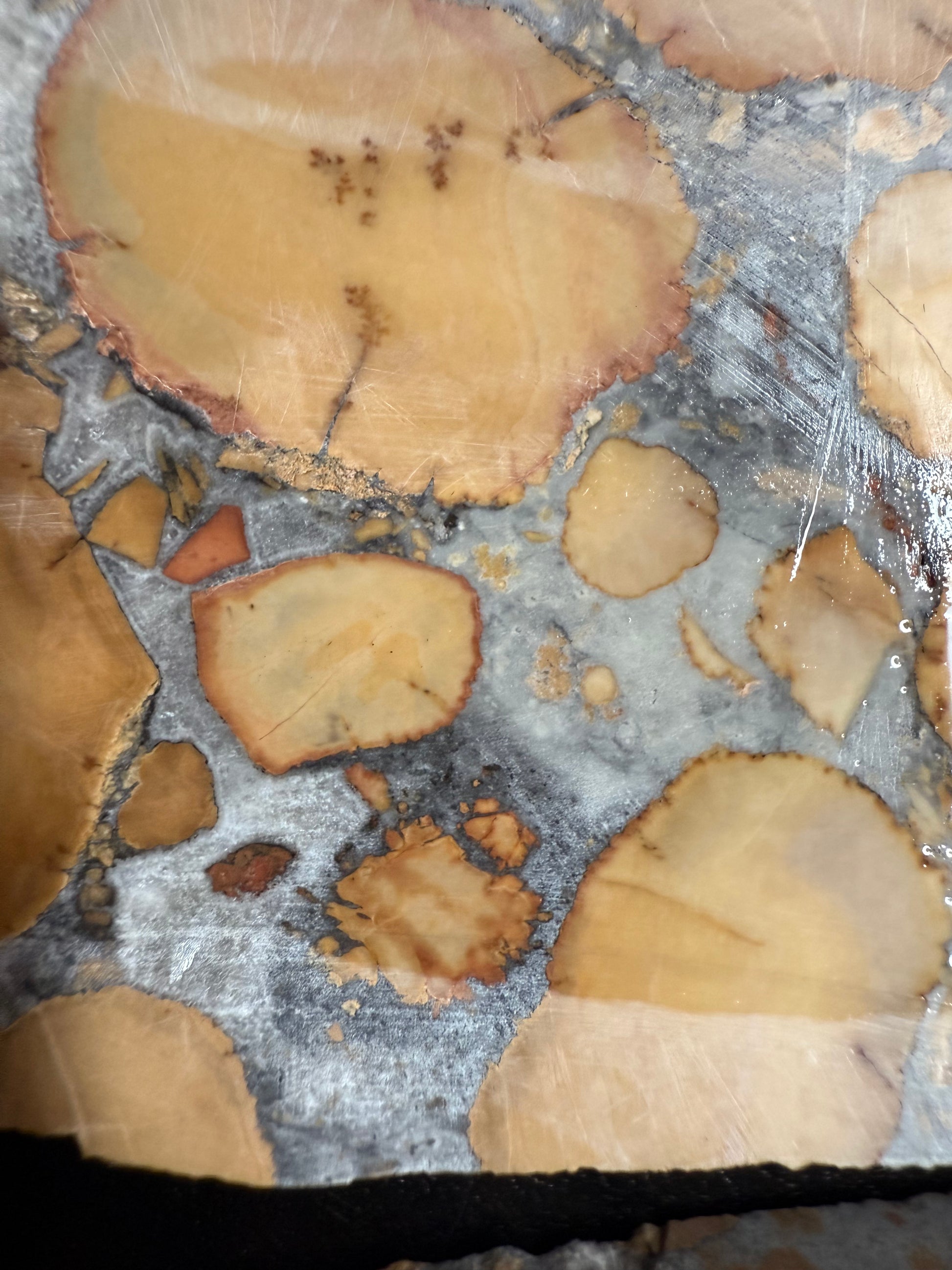 Awesome matched pair of maligano jasper slabs. I truly love this stuff, it takes an excellent polish and has awesome contrast between the brecciated yellow and gray quartz. These will make a couple of great matched sets of jewelry.