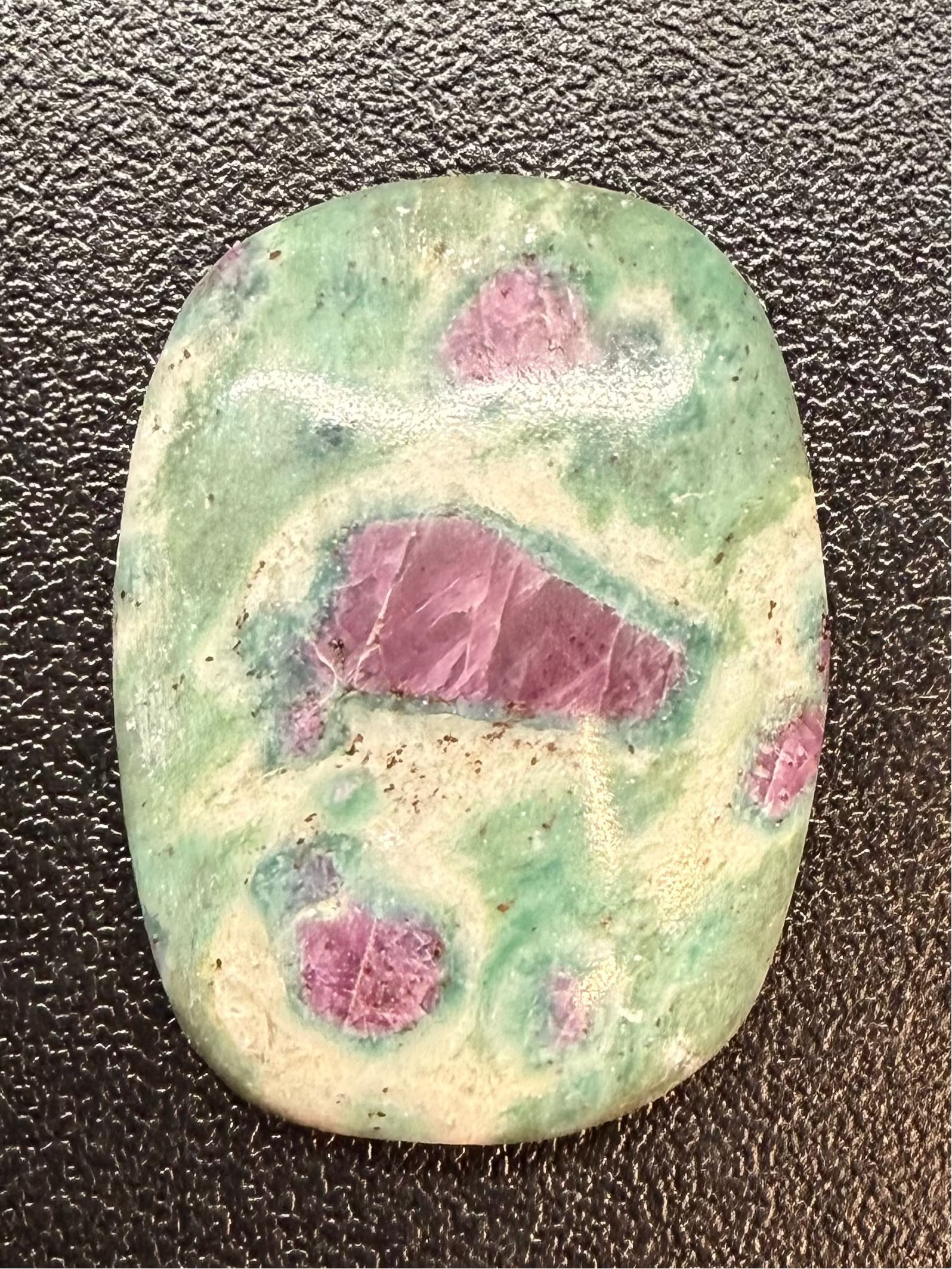 Gorgeous ruby-in-fuschite cabochon with very clear blue kyanite reaction rims around the corundum crystals. It's rare to find high quality sources of this material - the several cabochons available right now are from the only rough material I have ever purchased.