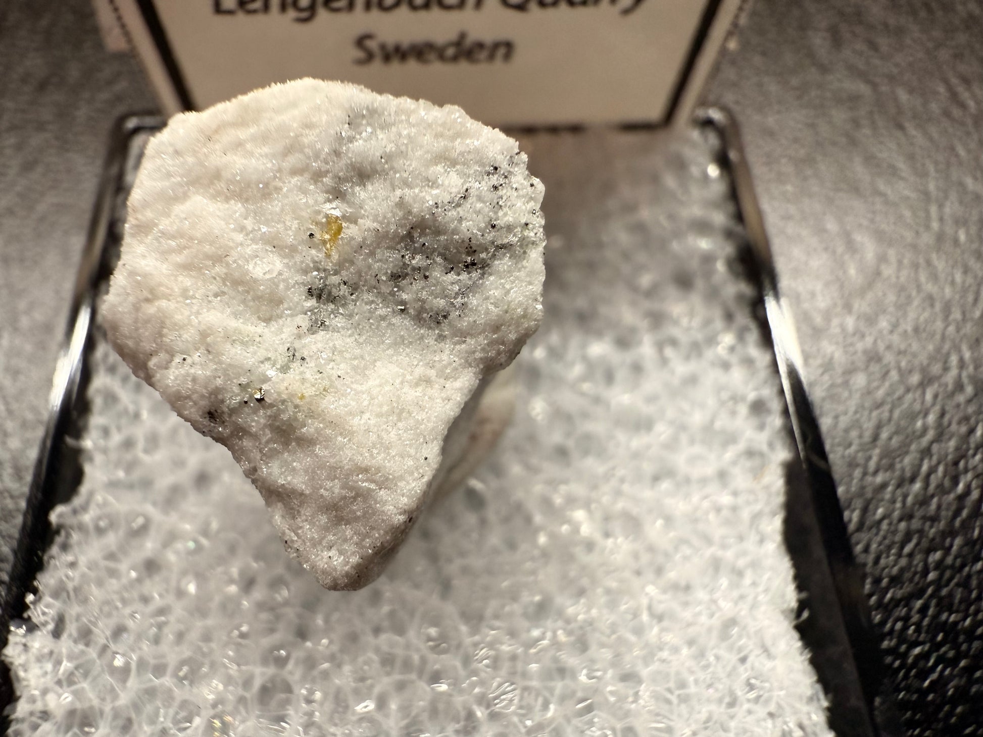 A tiny little sphalerite on dolomite from the Legenbach Quarry in Sweden